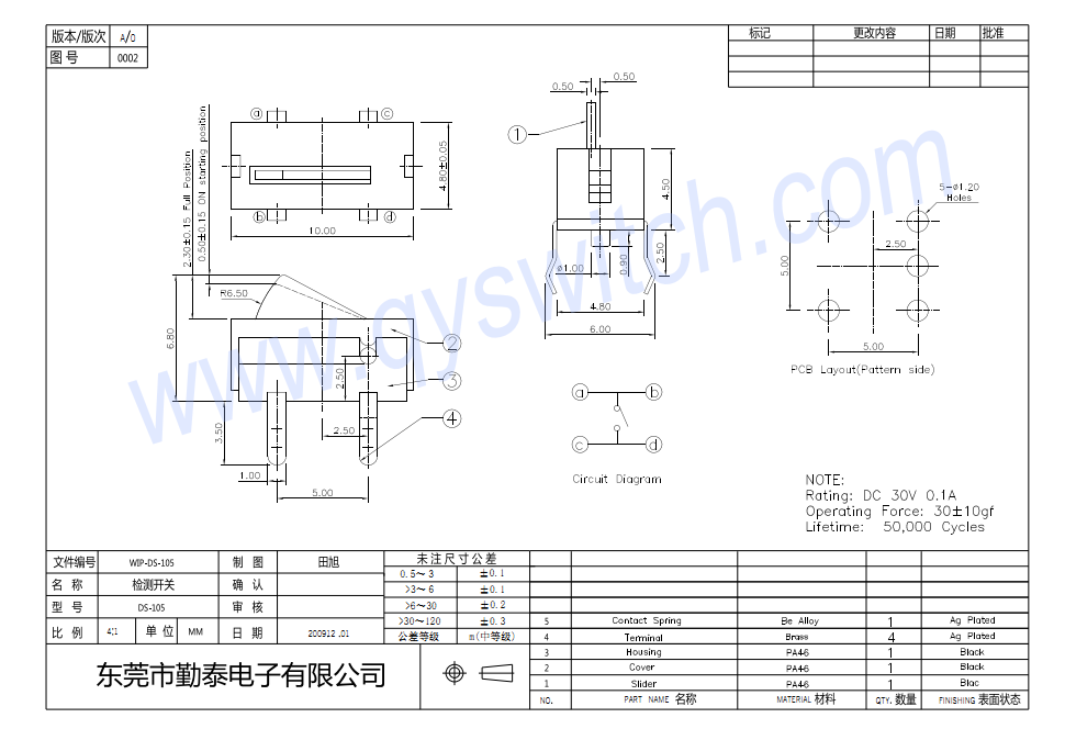 | 绝缘电阻Insulation Resistance:100MΩ min.100V DC |